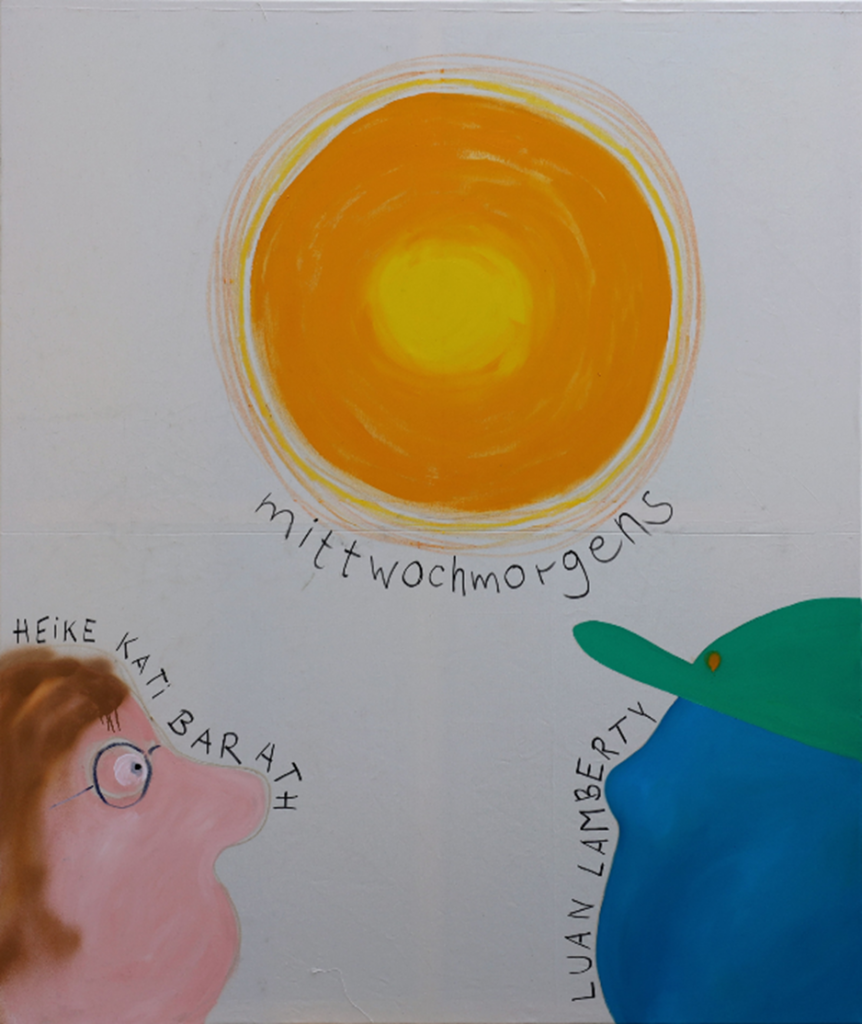 The exhibition „mittwochmorgens“ presents a pictorial dialogue between Luan Lamberty and Heike Kati Barath. Their artistic connection began in Bremen, where Luan Lamberty studied Fine Arts under Heike Kati Barath at the University of the Arts. The exhibition showcases painterly approaches to everyday life and its disruptions. The works oscillate between observation and subjective condensation: portraits, landscapes, moments in motion, and states in between.